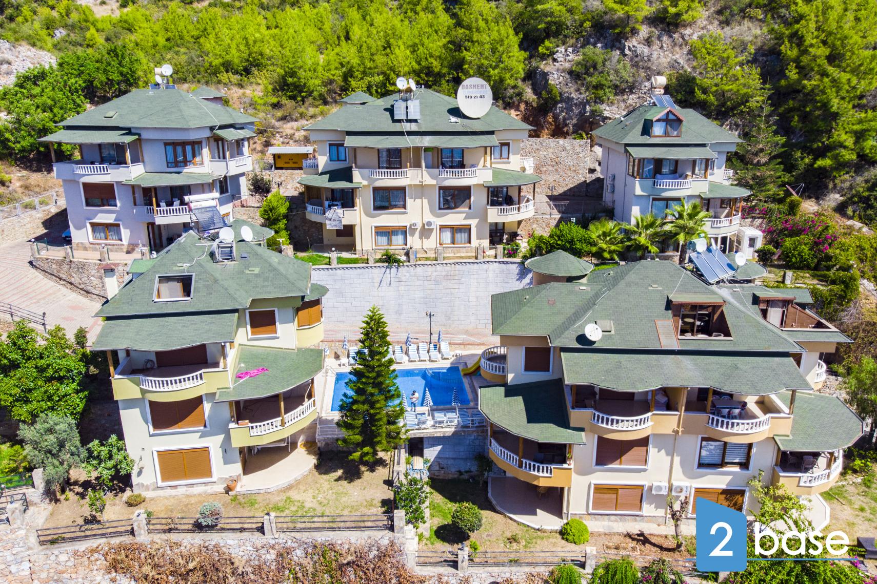 Bektas Villalari is a small residential complex of six villas in Alanya North, featuring a shared swimming pool, landscaped gardens, and a barbecue area. Located 30 minutes on foot from the city center and beach, the property offers a peaceful setting with mountain views and easy access to local shops.