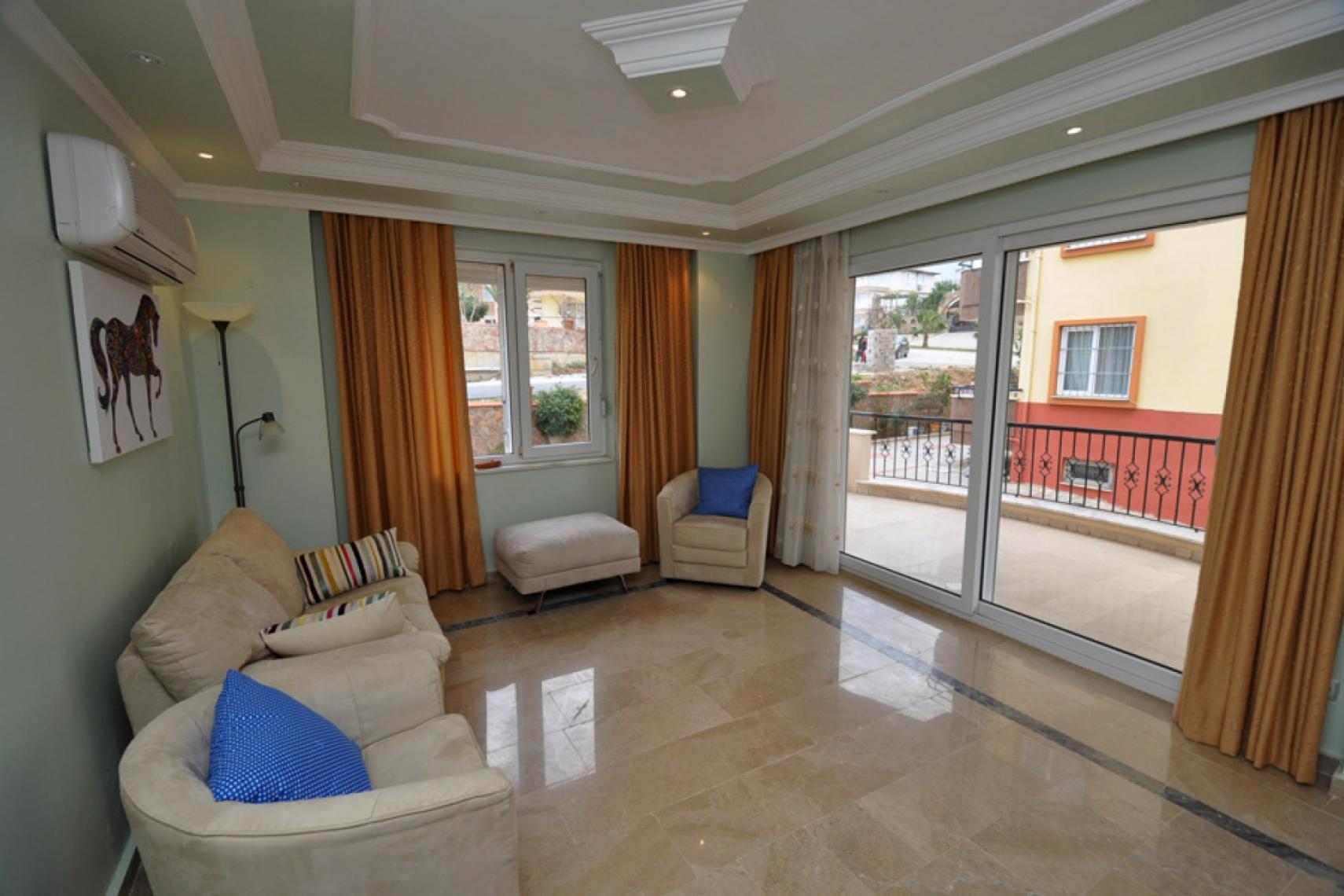 Oturma odasında ve yatak odalarında klima. Amerkan mutfak ve içerisinde ocak, fırın, buzdolabı ve bulaşık makinesi . kullanışlı balkonlarla Akdeniz akşamları için mükemmel. Huzur verici ve rahatlatıcı mobilyalı bir daire, hemen taşınılabilinir.